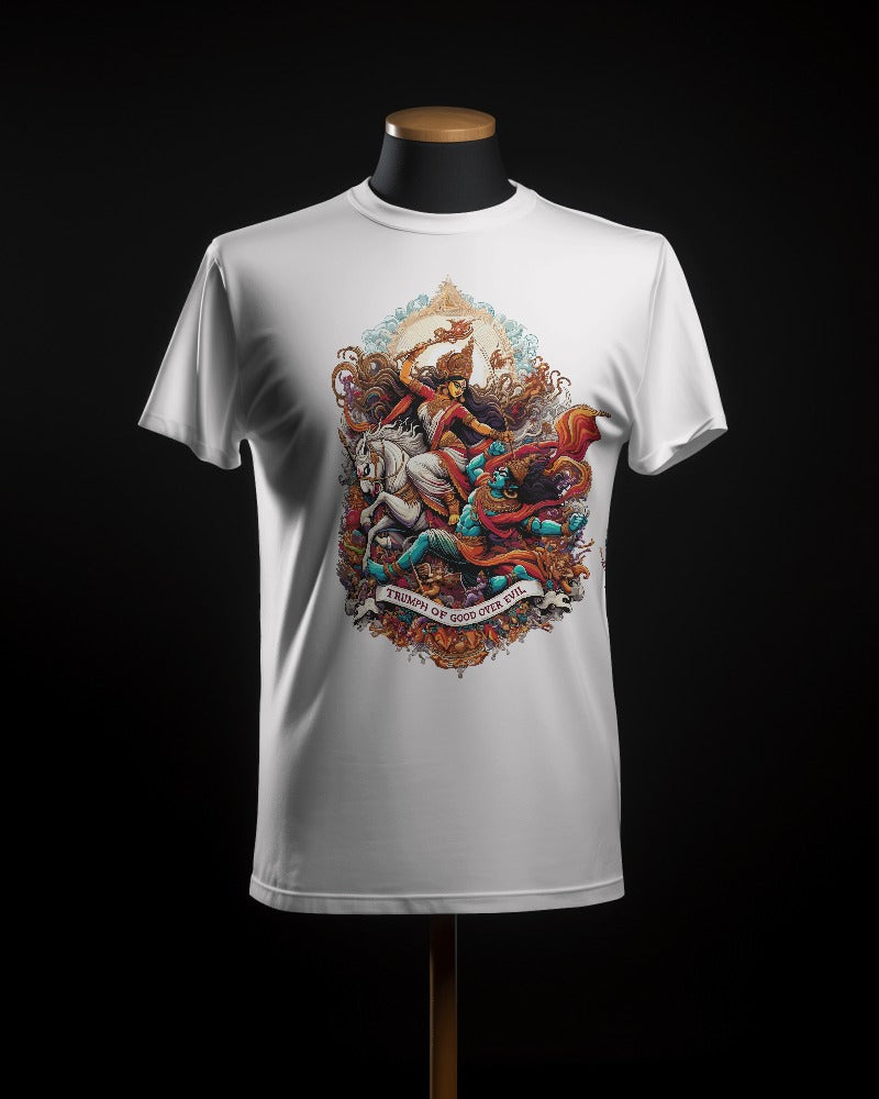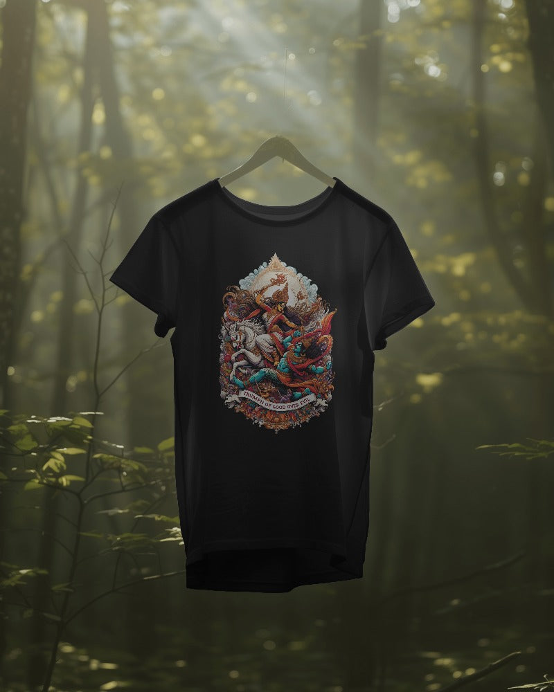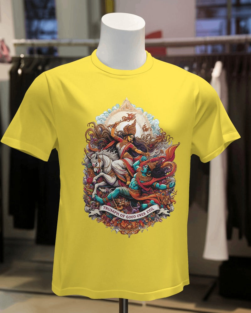 "Celebrate the divine essence of Goddess Durga with our Premium Women’s T-Shirt Dress. This elegant dress combines the strength and grace of the goddess with contemporary fashion. Crafted from high-quality materials, it offers both comfort and style, featuring a striking design that honors Durga’s empowering spirit. Perfect for making a bold statement while embracing divine elegance."